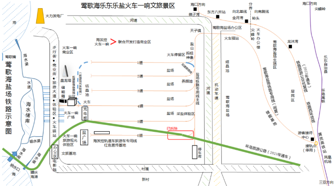 海南铁路博物馆院内铁路线修复及西北端延长至海边,利用八所车站12道相互连接,东南端延长至车辆段机务段。条件成熟后,延湿地公园打造一条旅游观光铁路线路至海东方附近;拟设计规划修建一条90公里左右岭头(尖峰岭)至东方,再到昌江(棋子湾)西环货线铁路复线,利用国家专利技术冷动力火车为载体,打造海南绿色环保节能独特的公交化旅游铁路线路,拟修铁路线路沿线两侧配套光伏发电和大数据存储运用分析中心库;拟建一座500-600米高的海南岛及东方市标志性建筑“东方塔”,作为亚太及东南亚商业地标性建筑。