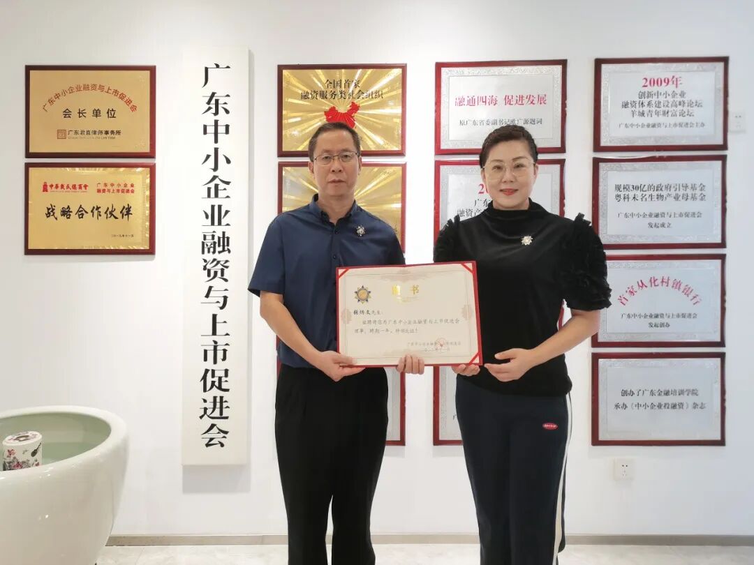 广东融促会副会长龙城嫒为张炳文理事颁发聘书。