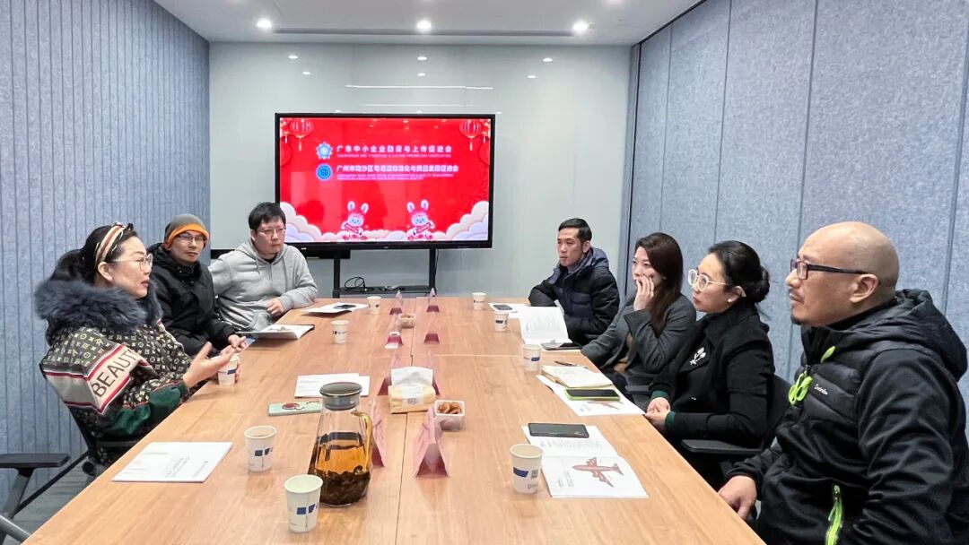 广东中小企业融资与上市促进会副会长龙城嬡,广州市南沙区粤港澳标准化与质量发展促进会秘书长罗欣、副秘书长黎明、吴嘉伟、苏柔文,广州中贯科技首席风控官孙添峰,书法专家陈可、梁庭辉欢聚一堂,共话发展。