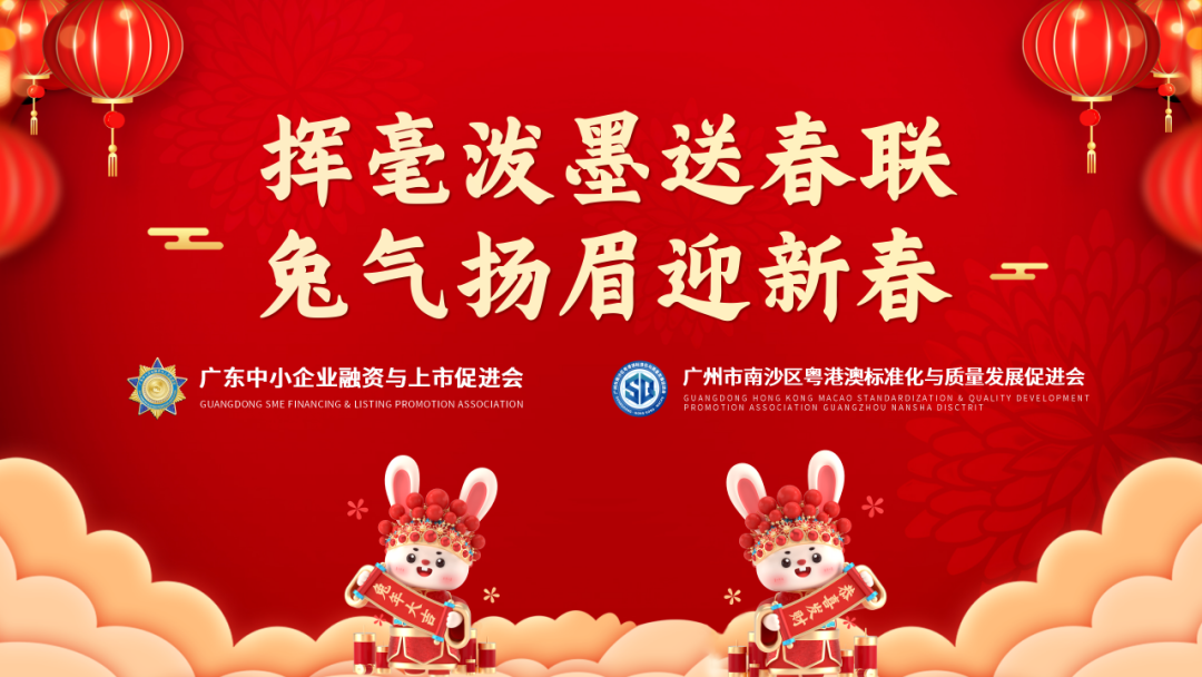 1月17日,广东中小企业融资与上市促进会、广州市南沙区粤港澳标准化与质量发展促进会联合主办"挥毫泼墨送春联,兔气扬眉迎新春"主题活动,共庆即将到来的兔年新春。